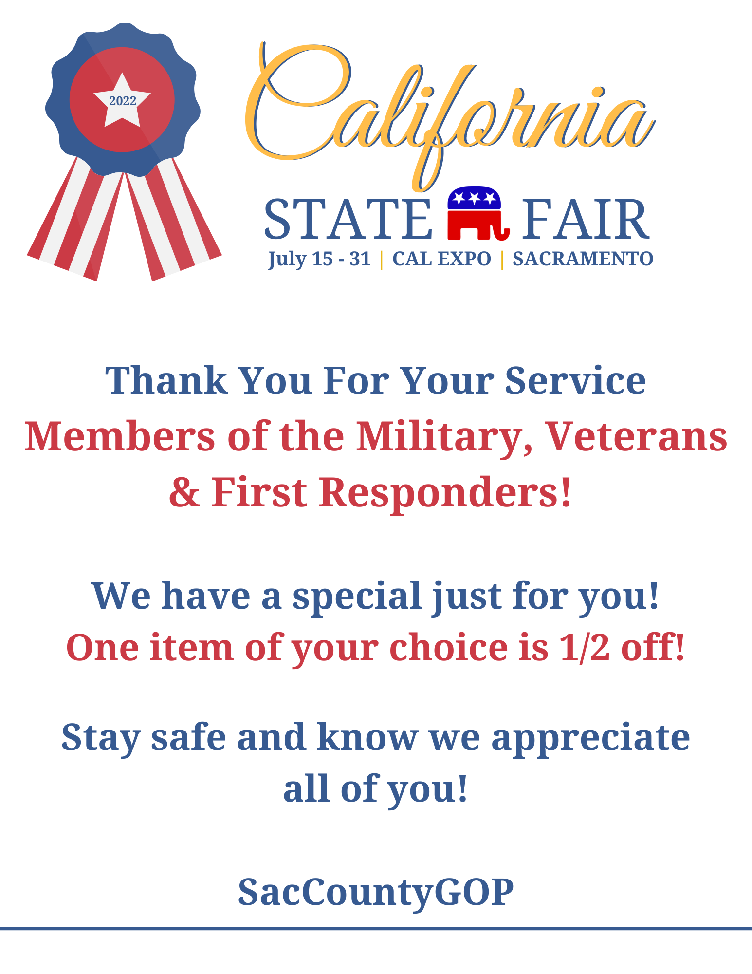 If you’d like your pictures from the State Fair to be posted in this gallery, email them to info@SacCountyGOP.com.