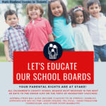 The SacCountyGOP School Districts Committee is tasked with informing parents and community members of upcoming school board agenda items that may be of interest, including topics relating to school security, parental rights, student health, and curriculum. We will include information on this page that alerts parents and taxpayers to upcoming meetings and events where your voices should be heard to make sure our kids receive the best education possible, in a healthy environment, free from indoctrination and overreach by activist school faculty and administrators. Your awareness and actions will provide support to the School Board Members, teachers and administrators who want to keep politics out of these decisions.