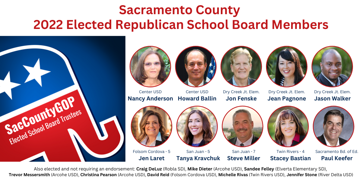 The SacCountyGOP School Districts Committee is tasked with informing parents and community members of upcoming school board agenda items that may be of interest, including topics relating to school security, parental rights, student health, and curriculum. We will include information on this page that alerts parents and taxpayers to upcoming meetings and events where your voices should be heard to make sure our kids receive the best education possible, in a healthy environment, free from indoctrination and overreach by activist school faculty and administrators. Your awareness and actions will provide support to the School Board Members, teachers and administrators who want to keep politics out of these decisions.