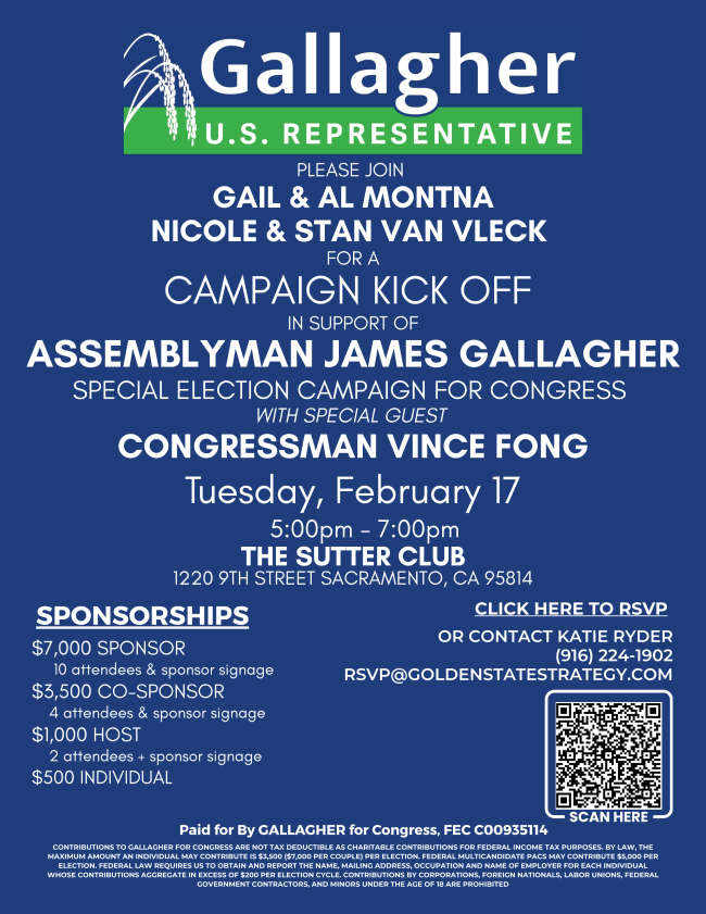 Events where SacGOP will host an information table, such as the County and State Fairs, will show up below, as well as fundraisers and watch parties.